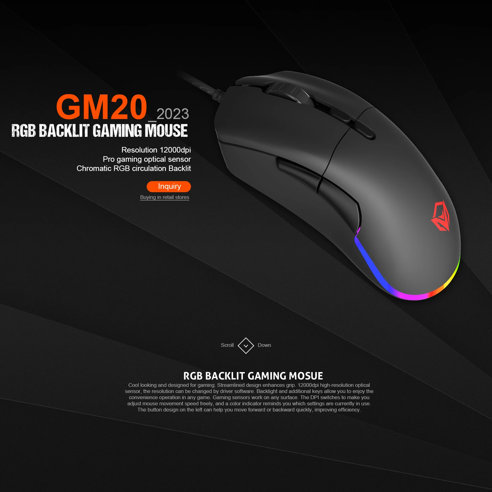 Upgrade your gaming experience with the 【MEETION】 GM-20 RGB Gaming Mouse. Featuring a high-resolution 4800 DPI sensor, customizable macro functions, and a chromatic RGB backlight, this ergonomic, right-handed mouse ensures superior accuracy and comfort for long gaming sessions.