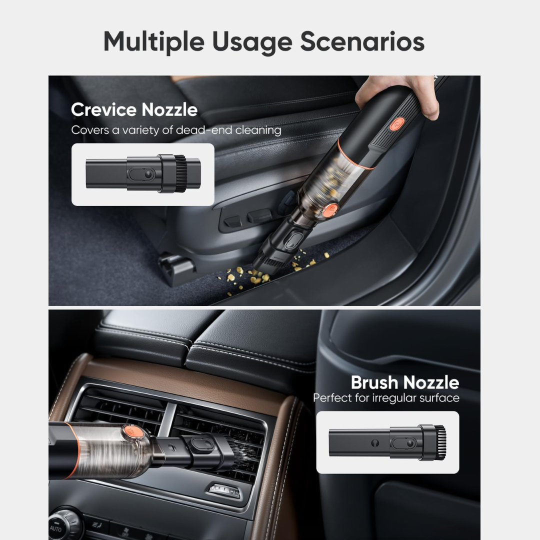 The compact and ergonomic handheld vacuum cleaner designed for precision cleaning anywhere. Equipped with a 2000mAh rechargeable lithium battery, a washable HEPA filter, and multiple nozzle attachments, it delivers powerful suction in a sleek, portable form. Perfect for home, car, or office — this vacuum ensures effortless cleanliness with one simple button.
