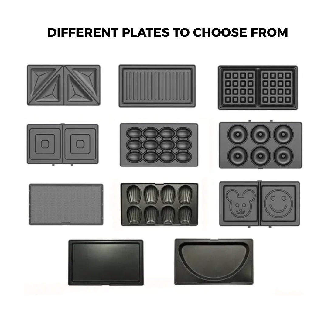 🔌 Plates Included: 8 Pairs (Sandwich, Waffle, Grill, Donut, etc.)