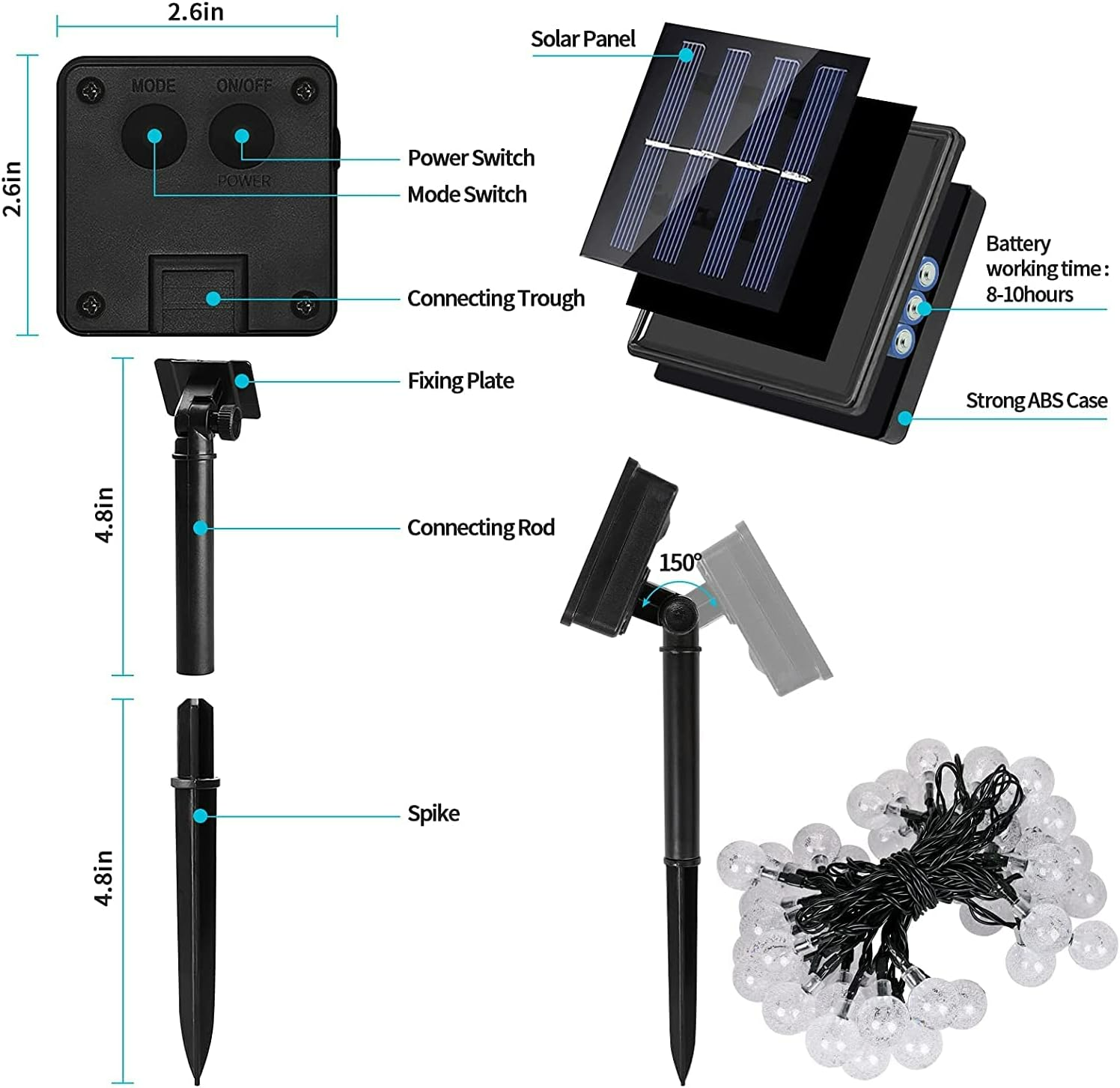 Crafted with shatterproof globe bulbs featuring a beautiful crystal bubble design, these solar string lights provide up to 8-10 hours of lighting after a full day of charging. Perfect for sustainable, energy-efficient decor! 🌞🔋
