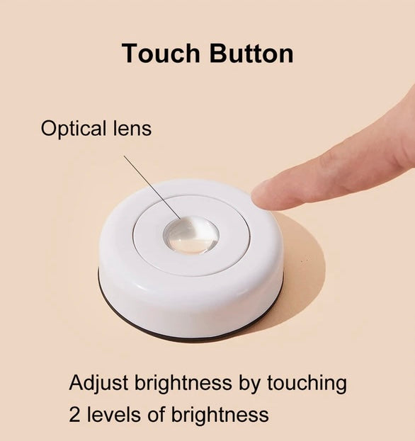 Material: ABSPower supply: 3 x AAA Battery (Not Included)Light color: White /warm /sunset/ sun /rainbowTouch sensor on/off switch, convenient to use.Do not need screws, can be directly pasted, 3M tight suction.Suitable for Door, attic, dark, basement, garage, cellar, cave, wardrobes, cabinets, cupboards