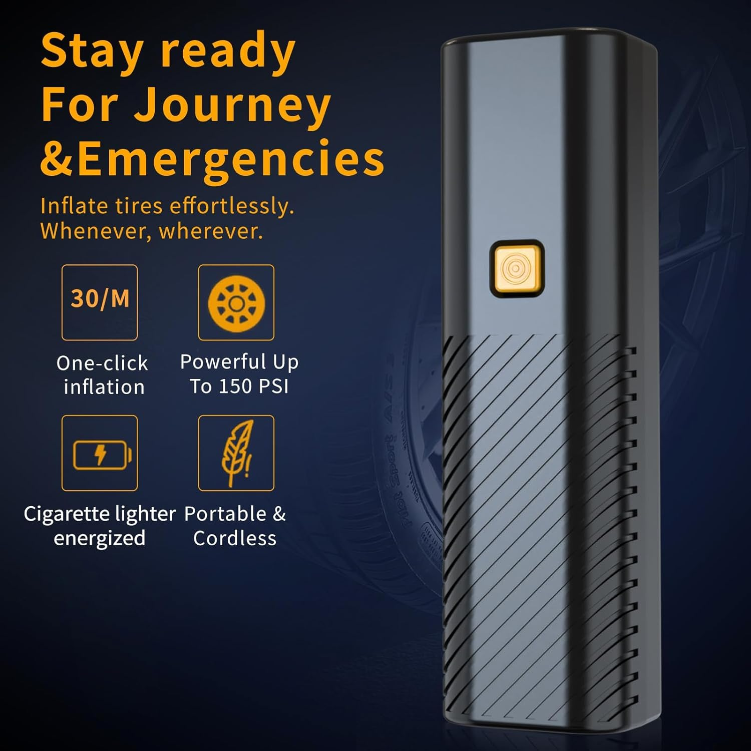 The Tire Inflator Portable Air Compressor is a compact, corded electric pump engineered for fast, reliable tire inflation. With a maximum pressure of 150 PSI, itโs capable of inflating car, motorcycle, and bicycle tires, as well as sports balls and inflatables. Built with a cooling fan system, it ensures safe continuous operation up to 25 minutes without overheating. Its one-click operation and built-in pressure detection make inflating hassle-free and precise, saving time and effort.