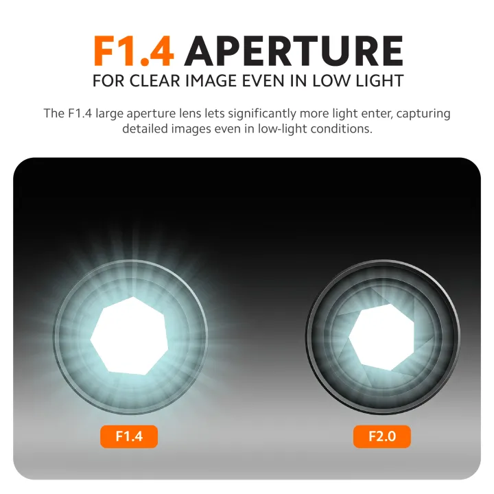 🌙 Low-Light Performance – F1.4 aperture + 6P lens = clear night vision and vibrant images.